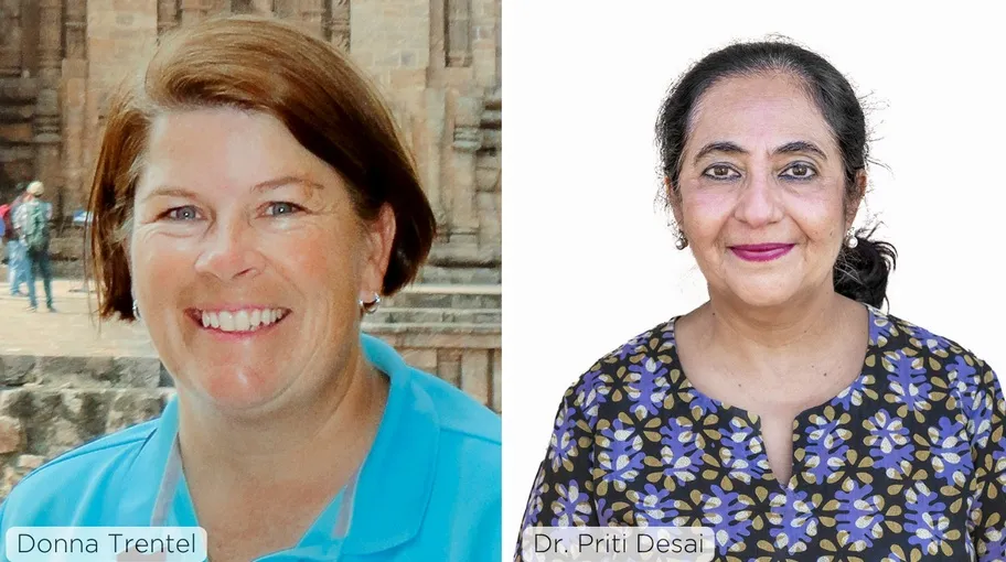 La Dra. Priti Desai, especialista certificada en vida infantil y profesora asociada en el departamento de Desarrollo Humano y Ciencias de la Familia de la Universidad de Carolina del Este en Greenville, Carolina del Norte, y Donna Trentel, especialista certificada en vida infantil y directora de Servicios Familiares y Voluntarios de Nationwide Children’s Hospital en Columbus, Ohio, son voluntarias de Operation Smile desde hace mucho tiempo y copresidentes del Consejo de Especialidades No Quirúrgicas de Atención Psicosocial de la organización.