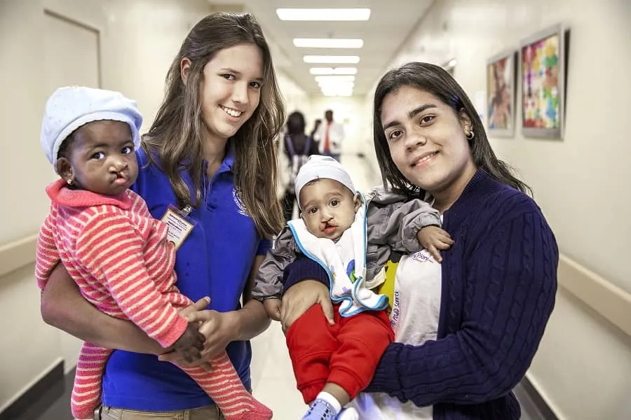 Los voluntarios y personal médico de Operation Smile asisten a las familias de los pacientes para que los pequeños se mantengan en buen estado de salud hasta el momento de la cirugía gratuita y segura.